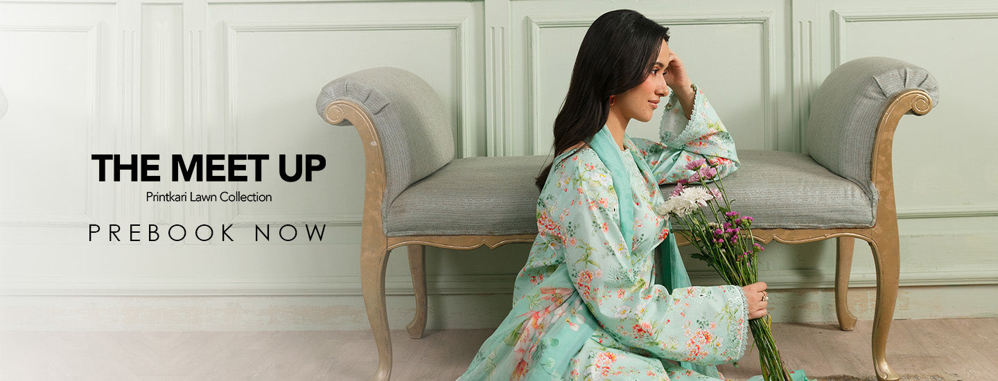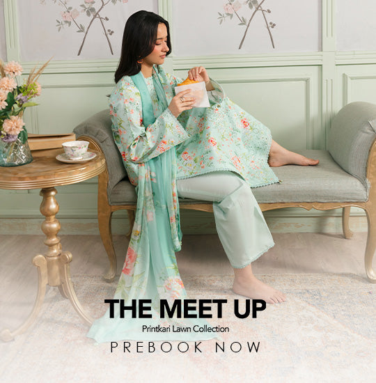 Description Inspired by the heart of The Meetup, this ensemble reflects connection and familiarity. The printed embroidered lawn front and sleeves are paired with a printed lawn back, finished with an embroidered organza border. The printed chiffon dupatta adds softness,...