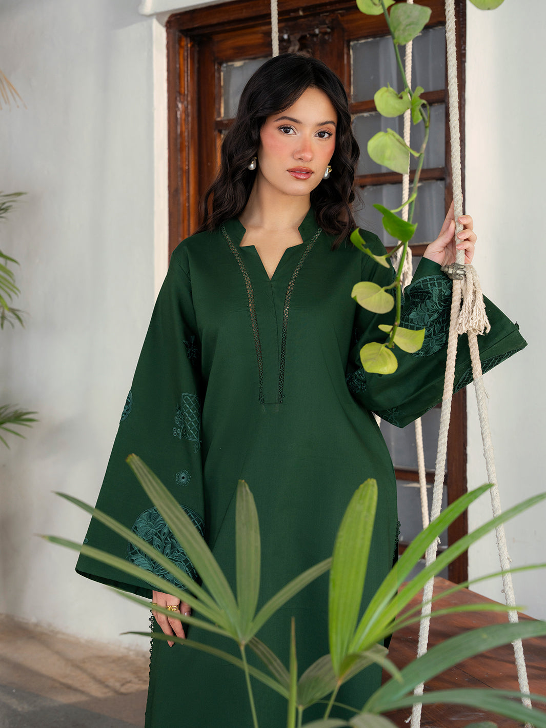 Earthy, grounded, and quietly powerful.Orlene is inspired by nature’s calm—its deep tone and thoughtful embroidery creating a look that feels composed and intentional. A cotton silhouette designed to move slowly, beautifully. Two-piece set Material : Cotton